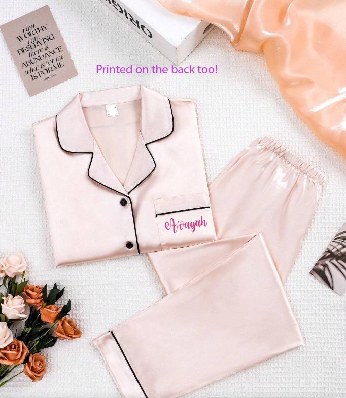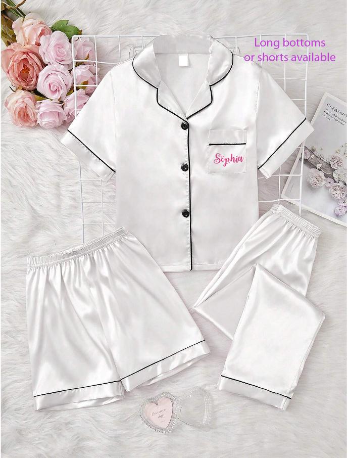 Kids Personalised Satin PJ's | Children's sleepover set | Kids Satin Pyjamas | Make Up Gift | Gift to teen daughter | Christmas PJ's | Satin